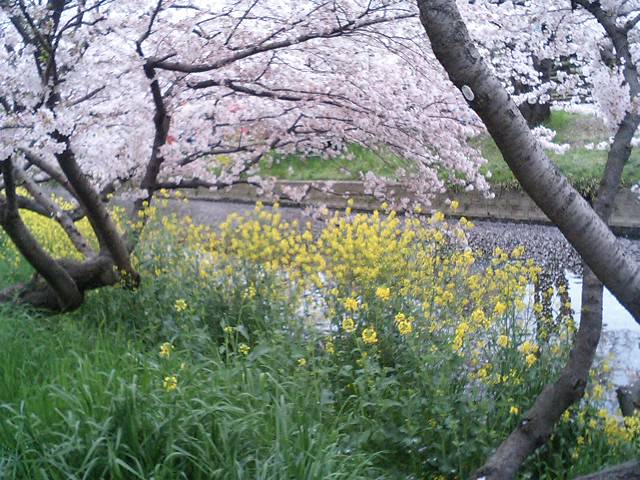 10分ほど歩いて、ふと川縁を見ると、菜の花?も咲いており、